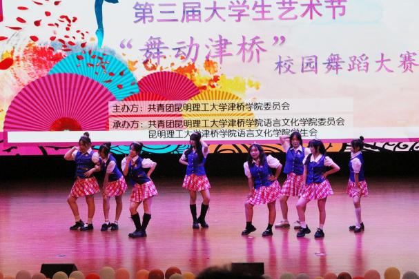 2024年5月15日昆明理工大学津桥学院第三届大学生艺术节“舞动津桥”舞蹈大赛在学生会堂举行。本次参赛作品种类丰富多样,涵盖民族舞、现代舞、古典舞等类型。选手们以扎实的基本功和专业的技术技巧以及生动的舞台表现力,感染着在场观众。